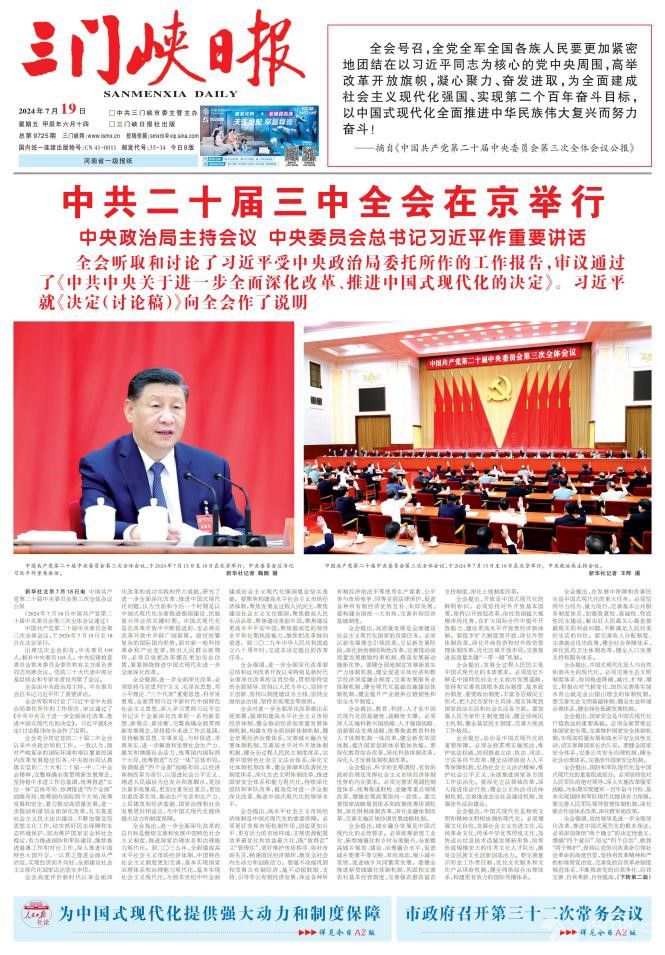 2024年7月19日《三門峽日報》A1版 2024年7月22日《三門峽日報》A1版