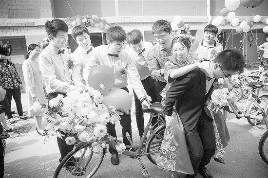5月1日,三門峽市檢察院青年干警劉凱在家人和朋友的祝福中,辦了一場熱鬧而簡單的單車婚禮。他嚴格遵守相關(guān)規(guī)定,婚前不發(fā)喜糖、不發(fā)請?zhí)⒉煌ㄖ獑挝活I(lǐng)導(dǎo)和同事參加婚禮;結(jié)婚當天不坐豪華車輛,而是騎著共享單車迎娶新娘。單位的領(lǐng)導(dǎo)和同事得知此事后,紛紛豎起了大拇指為劉凱點贊。 王飛 高瑋 攝 ( 編輯:cll ) |