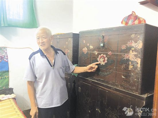 ![]() 楊丁熬向記者展示他家?guī)资昵坝玫哪鞠?/div>
