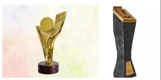 左側為首屆中國攝影金像獎獎杯,右側為從第七屆中國攝影金像獎開始使用的獎杯。
