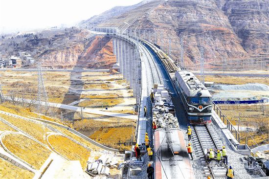 ![]() 3月10日,在盧氏縣境內(nèi)蒙華鐵路一處施工現(xiàn)場,施工人員正在線路上調(diào)整校準鐵路道軌。目前,線路主體工程已全部完工,工人們正加緊鐵路道軌、線路電氣化安裝及站房建設(shè)施工,預計9月底建成通車,將為河南西部山區(qū)群眾出行和當?shù)剞r(nóng)副產(chǎn)品外銷帶來更多便捷和機遇。程專藝攝