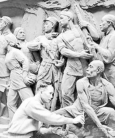 ![]() 雕塑家創(chuàng)作浮雕《抗日戰(zhàn)爭》