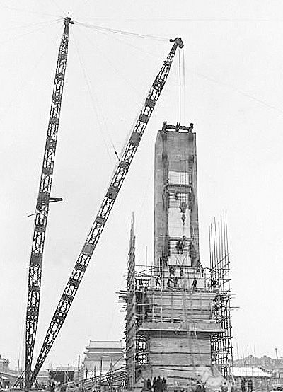 ![]() 吊裝人民英雄紀(jì)念碑碑心石