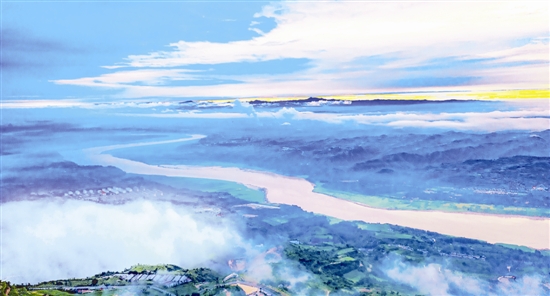 ![]() 藍(lán)天白云青山宛如巨幅畫卷