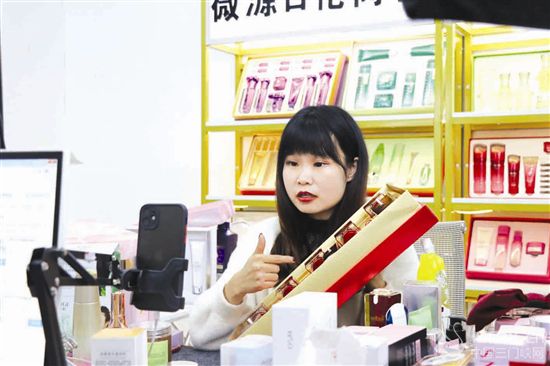 ![]() 近日,在義馬市電子商務產(chǎn)業(yè)園,企業(yè)銷售人員正在網(wǎng)上直播銷售化妝品。