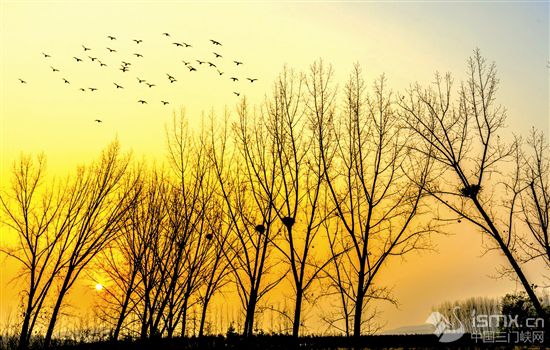 ![]() 初冬傍晚,夕陽西下,盧氏境內(nèi)洛河岸邊一群倦鳥歸巢,在夕陽的映照下,形成一幅美麗的剪影(攝11月29日)。