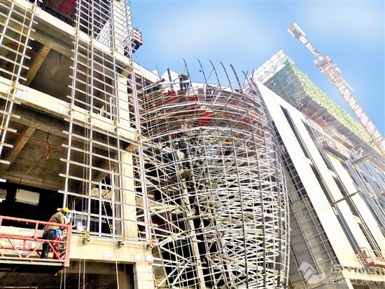 ![]() 1月4日是2021年第一個工作日,澠池縣國誠廣場建設(shè)項目工地呈現(xiàn)一派繁忙的勞動場景。圖為工人師傅高空作業(yè)。