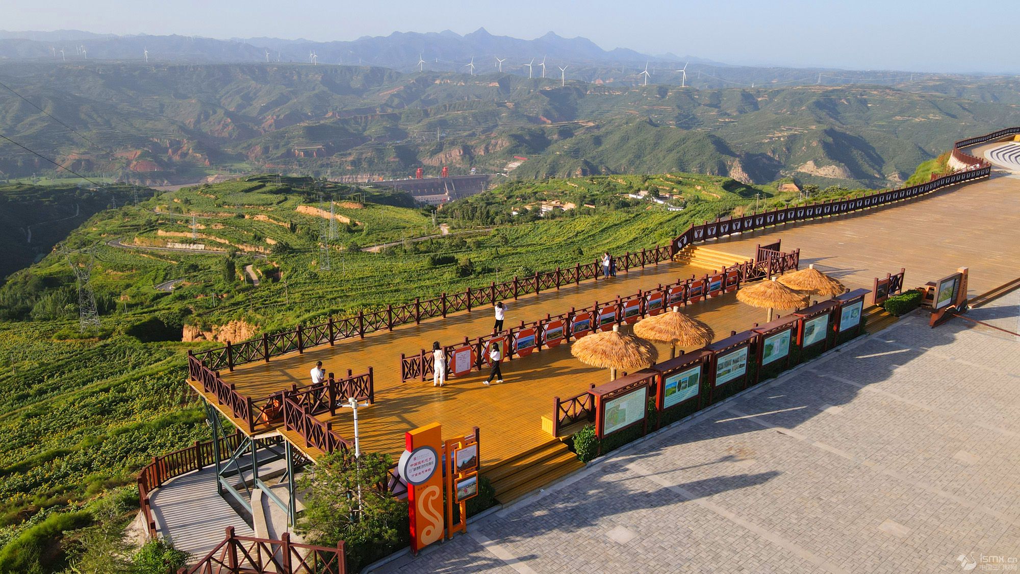 ![]() 雨后,初晴,藍(lán)天白云,秋高氣爽。山水林田湖草沙,快快樂樂上來啦。記者從高廟鄉(xiāng)大安村沿著盤山公路一路向上,行到半山腰的一處大門前時(shí),鑲嵌“三門峽黃河流域生態(tài)保護(hù)和高質(zhì)量發(fā)展示范區(qū)”字樣的照壁墻赫然展現(xiàn)在眼前。欣然停車,環(huán)顧四周,只見山坡層層梯田,處處綠意盎然。 ![]() 繼續(xù)向上行駛不遠(yuǎn),登上了觀景平臺(tái)。遠(yuǎn)眺九曲黃河,俯瞰大壩全貌,河水彎曲,群山連綿,紅的月季,黃的油葵,綠的草坪,轉(zhuǎn)動(dòng)的白色風(fēng)電葉片,色彩斑斕,美不勝收。