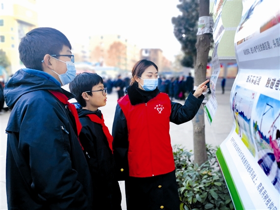 ![]() 12月9日,由市平安建設(shè)領(lǐng)導(dǎo)小組辦公室組織的“愛路護(hù)路,從我做起”普法宣傳教育進(jìn)校園活動(dòng)在三門峽市第三初級(jí)中學(xué)開展。洛陽(yáng)車站、高鐵三門峽南站等鐵路單位積極配合,派出志愿者為學(xué)生講解違反鐵路安全規(guī)定造成的事故案例,教育學(xué)生遵守國(guó)家、鐵路安全規(guī)定,確保鐵路運(yùn)營(yíng)和人身安全。王宏偉 攝 |