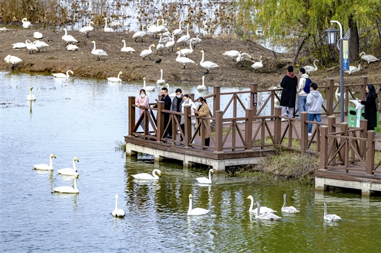 11月13日,正值周日,廣大市民到天鵝湖國家城市濕地公園內(nèi)觀賞白天鵝。據(jù)悉,入冬以來,市民觀賞白天鵝的熱度持續(xù)升溫,使這里再次成為冬季網(wǎng)紅打卡地。