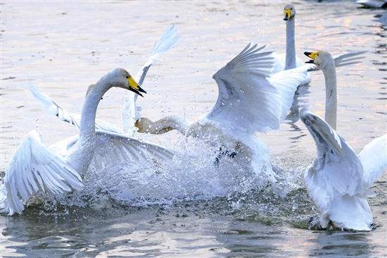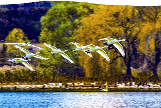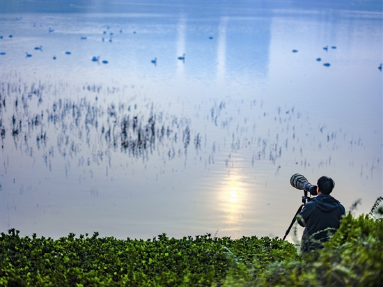 ![]() 展翅翱翔 ![]() 比翼齊飛 ![]() 定格美好 ![]() 形影相隨 ![]() 自由嬉戲 ![]() 岸邊小憩 ![]() 舉家回遷 ![]() 美好家園 ![]() 宛若仙境 當(dāng)清晨的第一縷陽(yáng)光透過(guò)云層灑向大地,三門(mén)峽天鵝湖國(guó)家城市濕地公園的水面披上一層淡淡的金光。 蒼龍湖像一塊巨大的美玉,在霧氣與晨曦的交織下顯得格外迷人。棲息在湖水中央成片的白天鵝被日出喚醒,或曲頸昂首、或微振雙翅、或抖擻毛羽、或向天而歌,奏響名副其實(shí)的《天鵝湖》圓舞曲。兩只白天鵝率先追逐著劃向水岸,已有早起的同伙在岸邊覓食。守候在此的攝影愛(ài)好者迅速按下快門(mén),定格的是精彩的瞬間,留存的是美麗的記憶。 這是冬季三門(mén)峽新一天美好的打開(kāi)方式。 1999年冬,著名詩(shī)人舒婷來(lái)三門(mén)峽觀賞白天鵝寫(xiě)下名句——“白天鵝落腳的地方,是我們心中光明的河”,既表達(dá)了人們對(duì)美好的向往,也是對(duì)三門(mén)峽人與自然和諧共生的贊譽(yù)。而這般的美好期許對(duì)三門(mén)峽市民來(lái)說(shuō),幾十年來(lái)從未缺席。 三門(mén)峽自然條件優(yōu)越,早在20世紀(jì)70年代,就有白天鵝飛臨這里棲息越冬。幾十年來(lái),三門(mén)峽人保護(hù)白天鵝、守護(hù)美好家園的意識(shí)不斷增強(qiáng),出臺(tái)一系列保護(hù)白天鵝的管理辦法和條例,建立健全相關(guān)管理制度,不斷優(yōu)化生態(tài)環(huán)境,全市合適白天鵝棲息的地點(diǎn)不斷增多。每年10月至次年3月,天鵝湖國(guó)家城市濕地公園、黃河公園、湖濱區(qū)王官黃河濕地以及市城鄉(xiāng)一體化示范區(qū)天鵝灣等地都有“白衣仙客”的身影。三門(mén)峽被稱(chēng)為“中國(guó)大天鵝之鄉(xiāng)”,也收獲了“天鵝之城”的美譽(yù),成為眾多游客、攝影愛(ài)好者以及文人墨客心中美好的“詩(shī)和遠(yuǎn)方”。 今年2月,為更好地研究和保護(hù)白天鵝,全國(guó)鳥(niǎo)類(lèi)環(huán)志中心三門(mén)峽大天鵝環(huán)志站的工作人員為50只白天鵝佩戴環(huán)志環(huán)、信號(hào)追蹤器。經(jīng)觀測(cè),目前已發(fā)現(xiàn)有106號(hào)環(huán)志、108號(hào)環(huán)志等十五六只白天鵝再次返回三門(mén)峽,不僅如此,106號(hào)環(huán)志、108號(hào)環(huán)志白天鵝還是帶著多只可愛(ài)的天鵝寶寶舉家遷徙,三門(mén)峽已然成為白天鵝的第二故鄉(xiāng)。 |