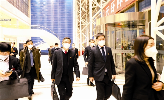 1月6日,市八屆人大一次會議勝利閉幕,人大代表走出會場奔向各自崗位。 本報記者 蘇慧 攝