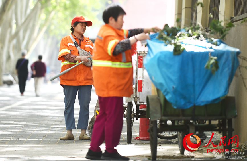 環(huán)衛(wèi)工人在洛陽(yáng)市澗西區(qū)西苑路附近進(jìn)行路面清掃工作。人民網(wǎng)記者 尚明楨攝