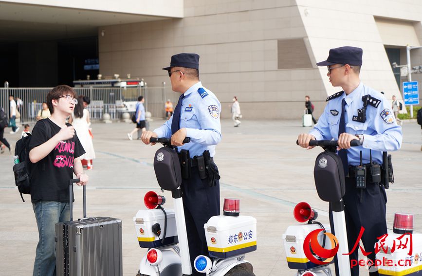 鄭州市公安局鄭東分局民警在高鐵站巡邏執(zhí)勤。人民網(wǎng)記者 王佩攝