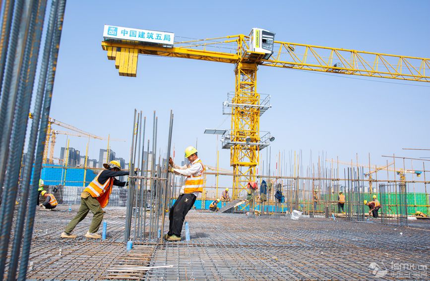 中建五局建設(shè)者在鄭州“兩院一中心”項(xiàng)目現(xiàn)場(chǎng)施工作業(yè)。張佳佳攝