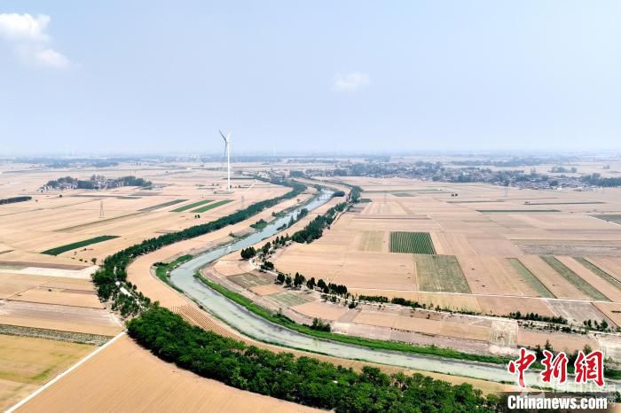 5月21日,河南8500萬畝小麥進入適宜收獲期。河南是“中原糧倉”,糧食總產(chǎn)量連續(xù)多年穩(wěn)定在1300億斤。據(jù)河南官方通報,今年該省小麥適宜收獲期在5月21日至6月10日,大部地區(qū)較常年偏早3天至5天。圖為周口市鄲城縣142萬畝小麥陸續(xù)成熟。(無人機照片)徐松 攝