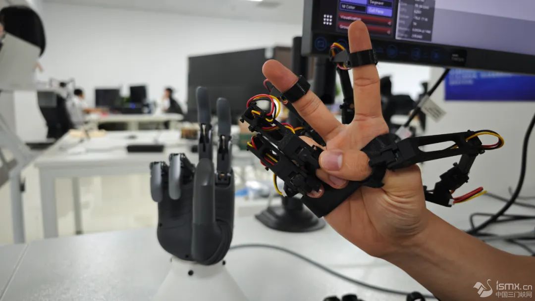 “在我們?nèi)祟惪雌饋砗芎唵蔚膭幼鳎瑢τ跈C器人來說很困難,比如抓取、分揀等。”中豫具身智能實驗室算法工程師劉元基指著一位正在接受訓練的五指機器人手說。它和工程師的手部同頻,一會比耶,一會伸大拇指,靈活自如。