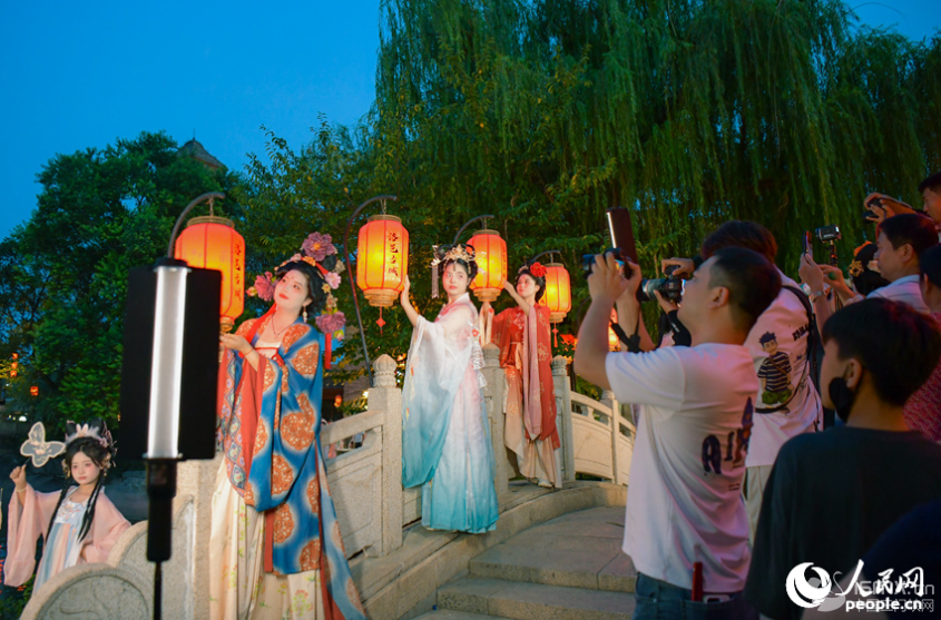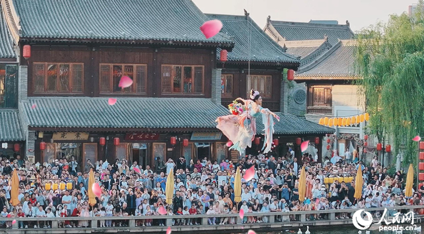 “天女散花”吸引眾多游客觀賞打卡。人民網 宋芳鑫攝 近日,河南洛陽洛邑古城華燈璀璨,身著漢服的游客衣袂翩躚,與夜間景致構成古今交融的畫卷。暑期以來,這里人氣持續(xù)攀升,夜間經濟與體驗消費成為文旅新亮點。 近年來,洛陽老城區(qū)深耕“人民文旅”,打造50余處文化場景、100多場演藝,激活消費。如今,漢服店從18家增至1360家,民宿從13家擴至937家,帶動3萬余人就業(yè),從業(yè)者月均增收超3000元。2025年上半年接待游客2049.09萬人次,收入153.71億元。 據了解,老城區(qū)開展的“人間煙火氣消費在老城”活動將持續(xù)至9月30日,62家漢服店、88家餐飲店等推出優(yōu)惠活動,誠邀四方賓客感受老城活力。(尚明楨、王佩、宋芳鑫)