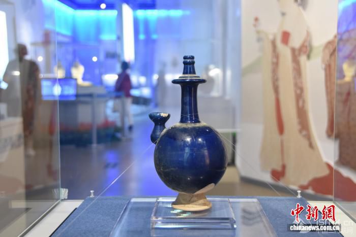 ![]() 8月13日,在位于河南鄭州的河南南水北調(diào)博物館內(nèi),國內(nèi)首次唐代青花瓷專題展“絲路華章——唐代青花瓷瑰寶展”吸引眾多游客參觀。圖為唐代藍(lán)釉凈瓶。 王宇 攝