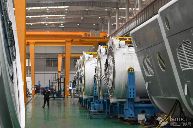 河南明陽新能源裝備產(chǎn)業(yè)園內(nèi)正在組裝的風(fēng)機(jī)(劉宏冰 攝) 河南明陽新能源裝備產(chǎn)業(yè)園的風(fēng)機(jī)車間正在組裝一個(gè)個(gè)“龐然大物”。廠長尹權(quán)指著一臺(tái)陸上7.5兆瓦風(fēng)機(jī)發(fā)電機(jī)組介紹:“在滿發(fā)風(fēng)速下,一年可發(fā)電2800多萬千瓦時(shí),每年可節(jié)約9800噸標(biāo)準(zhǔn)煤,減少二氧化碳排放2.5萬噸。” 作為中國500強(qiáng)和新能源裝備全球領(lǐng)軍企業(yè),明陽集團(tuán)與信陽達(dá)成全面戰(zhàn)略合作,推動(dòng)豫東南高新區(qū)綠色能源裝備制造產(chǎn)業(yè)園、固始縣再生資源循環(huán)經(jīng)濟(jì)產(chǎn)業(yè)園等項(xiàng)目落地。“我們將發(fā)揮‘鏈主’效應(yīng),在信陽打造千億級(jí)新能源高端裝備產(chǎn)業(yè)集群,讓新能源產(chǎn)業(yè)新質(zhì)生產(chǎn)力在老區(qū)煥發(fā)蓬勃生機(jī)。”明陽集團(tuán)中部大區(qū)董事長劉學(xué)武信心滿滿。